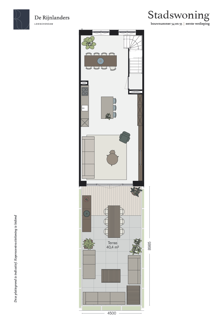 De Rijnlanders bestaat uit vier royale stadswoningen met een woonoppervlak variërend van circa 157 m² tot circa 193 m². Je komt binnen in de hal op de begane grond, hangt je jas op en loopt door naar de prachtig lichte woonkamer met open keuken op de eerste verdieping. De openslaande deuren bieden toegang tot een schitterend dakterras en verdeeld over de tweede en derde verdieping beschik je over 4 of 5 slaapkamers. Jouw eigen plek in het hart van Leidschendam, waar je in alle rust kunt wonen en genieten. Op loopafstand van winkels, horeca, cultuur en de natuurlijke omgeving van de Vliet.